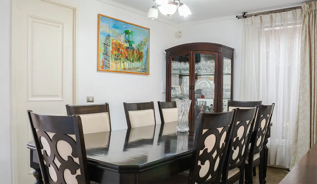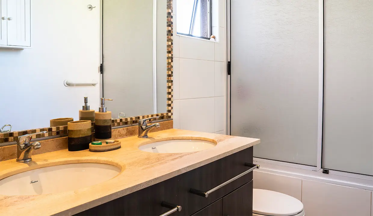 En el primer piso también se encuentra un baño de visitas y el dormitorio principal en suite, con walk-in closet, ofreciendo comodidad y privacidad en un ambiente cálido y sereno.