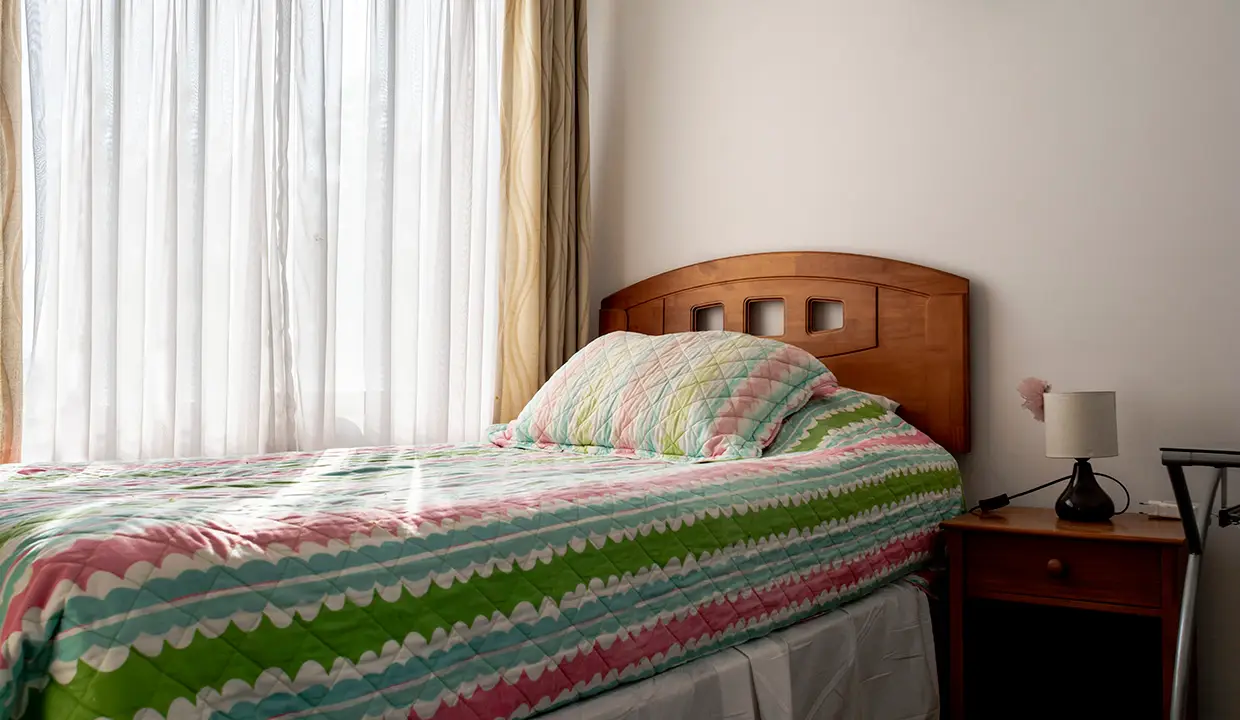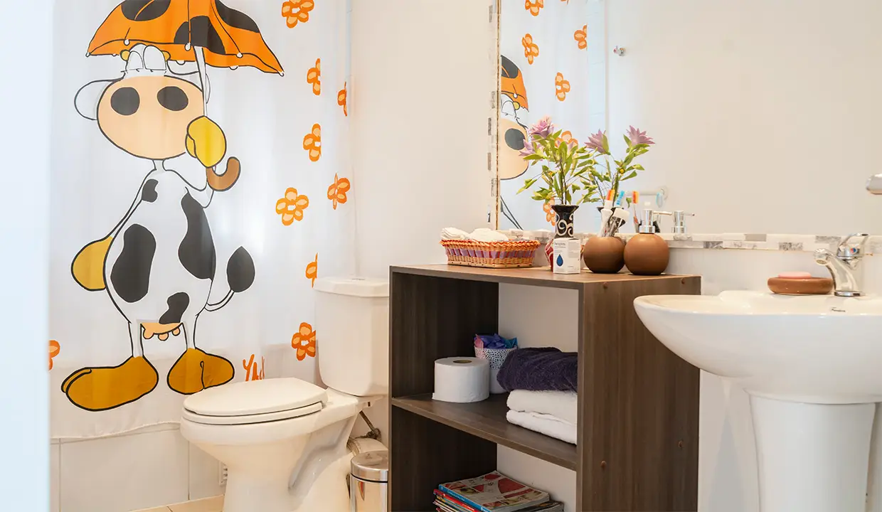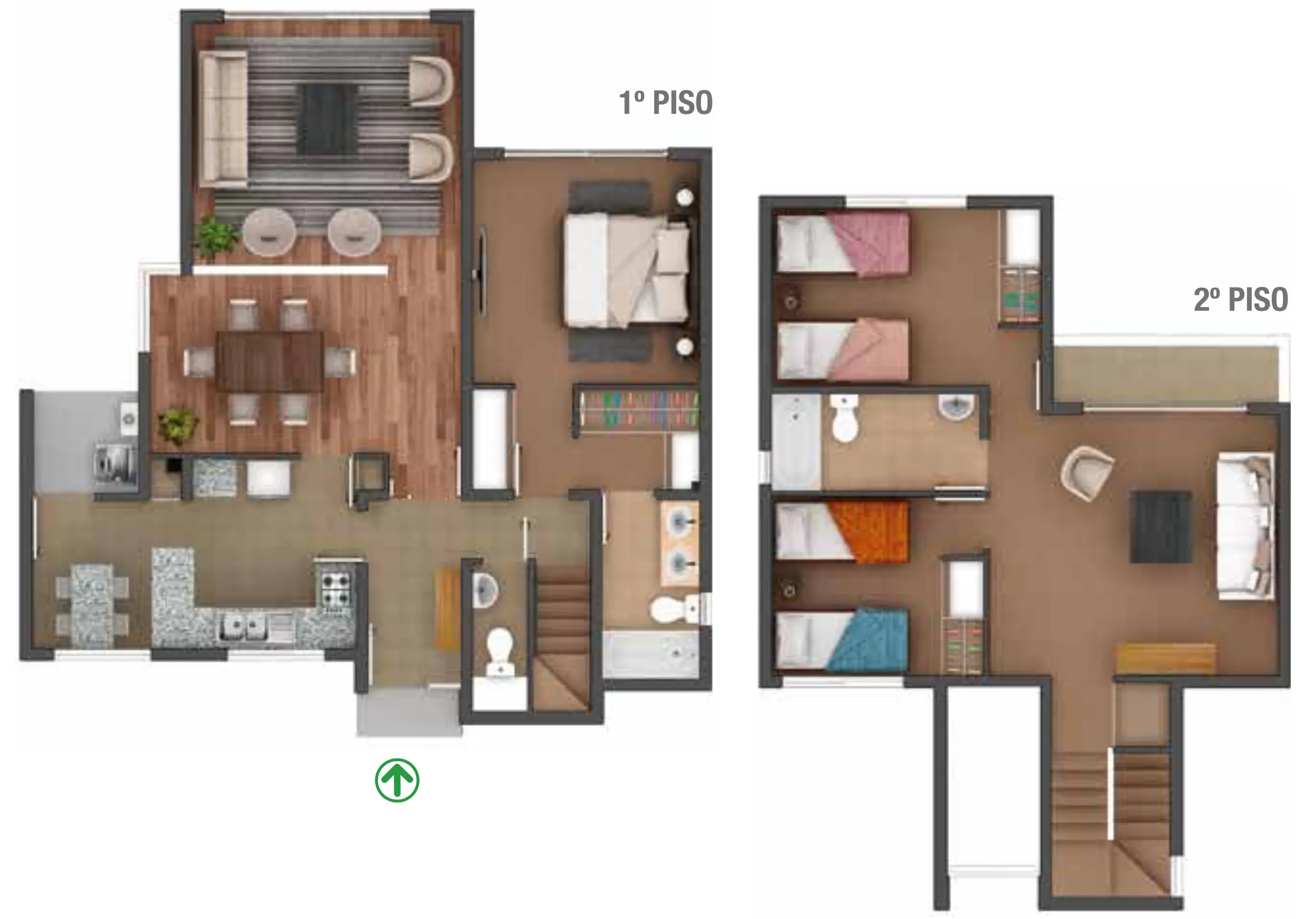 Una escalera alfombrada conduce al segundo nivel, donde se abre una acogedora sala de estar familiar con acceso directo a un balcón con vista hacia el oriente, ideal para disfrutar de la tranquilidad del entorno. Este piso incluye además un baño completo y dos dormitorios amplios, cada uno con capacidad para dos camas, perfectos para familia o visitas.