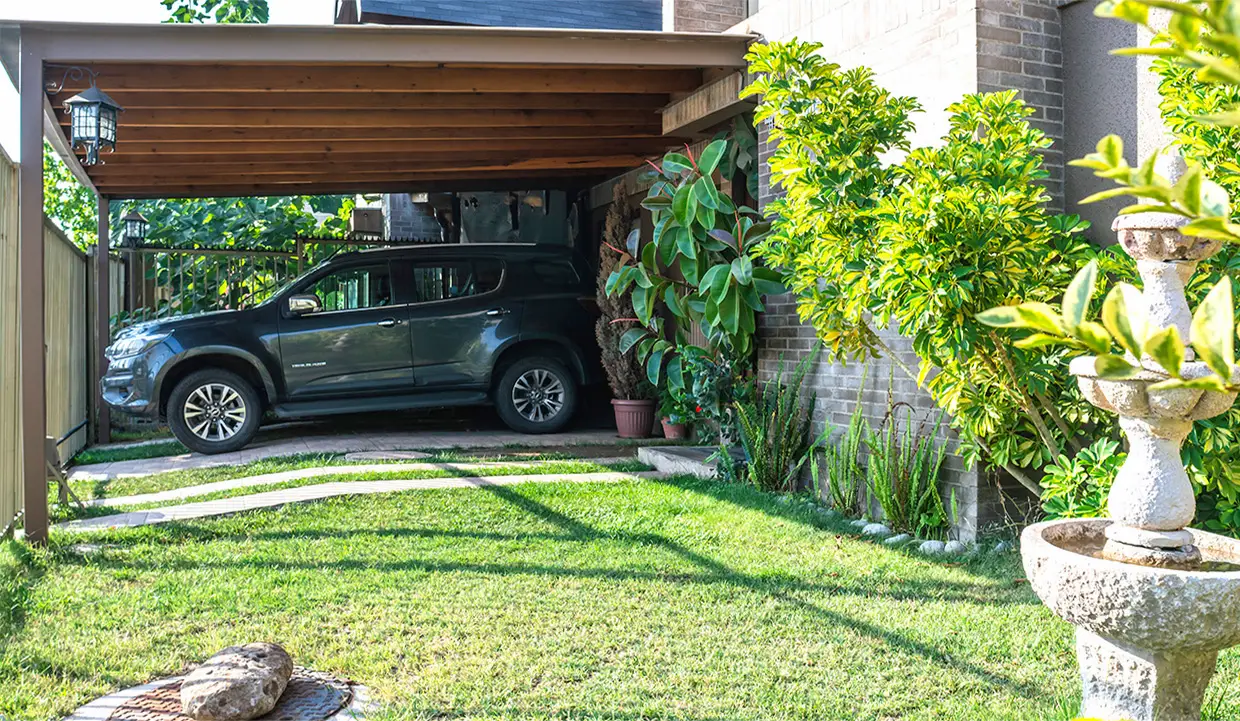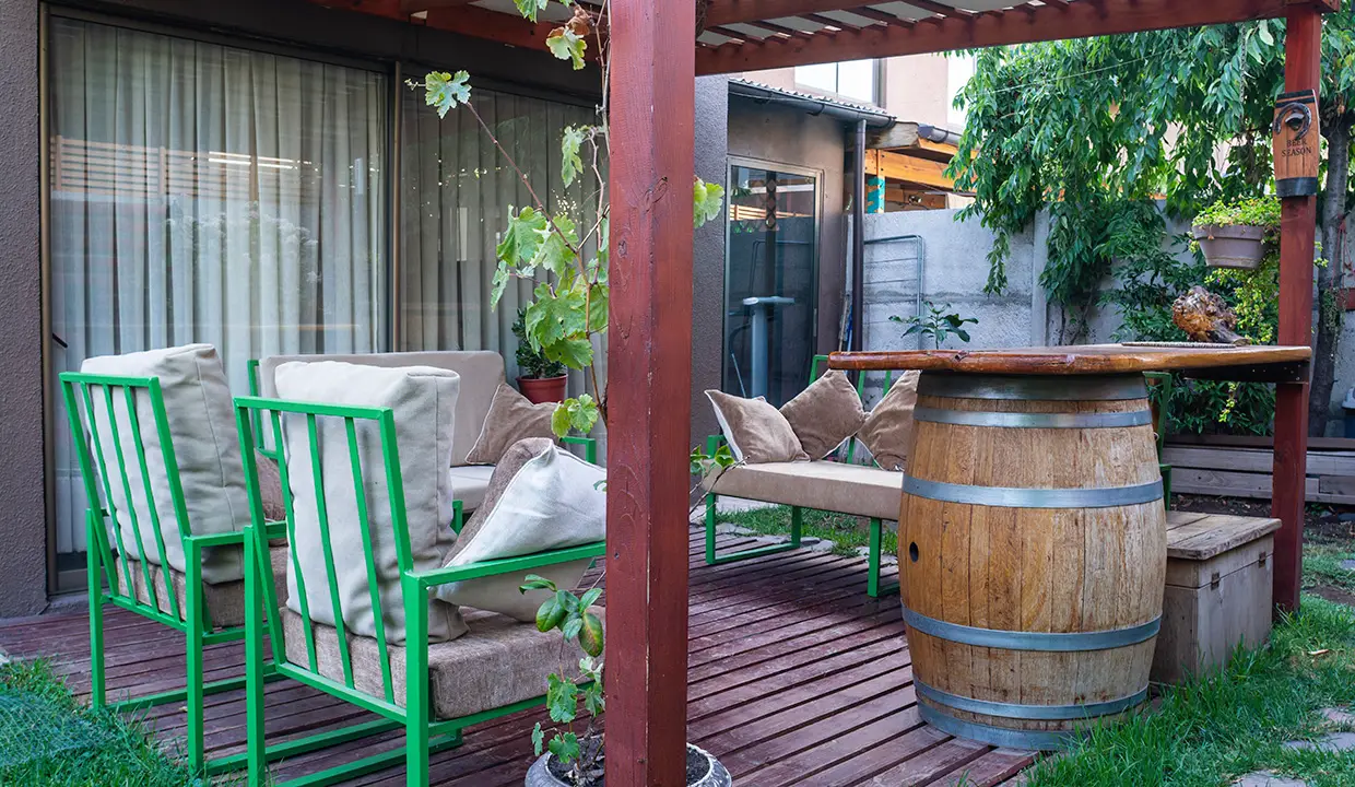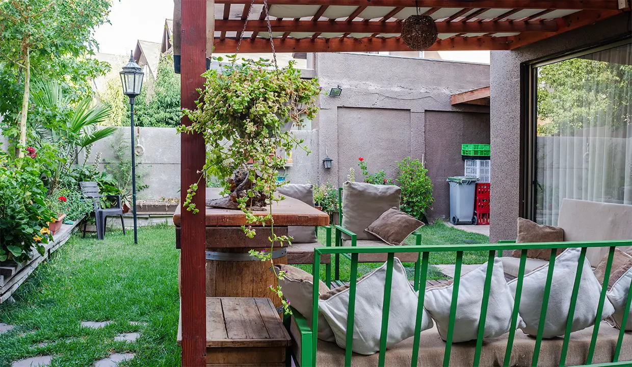 El patio trasero con césped en toda su extensión es ideal para momentos de descanso y juegos, con jardineras integradas, una gran terraza para reuniones al aire libre y un pasillo techado que conecta con el jardín frontal, generando un circuito armónico y funcional.